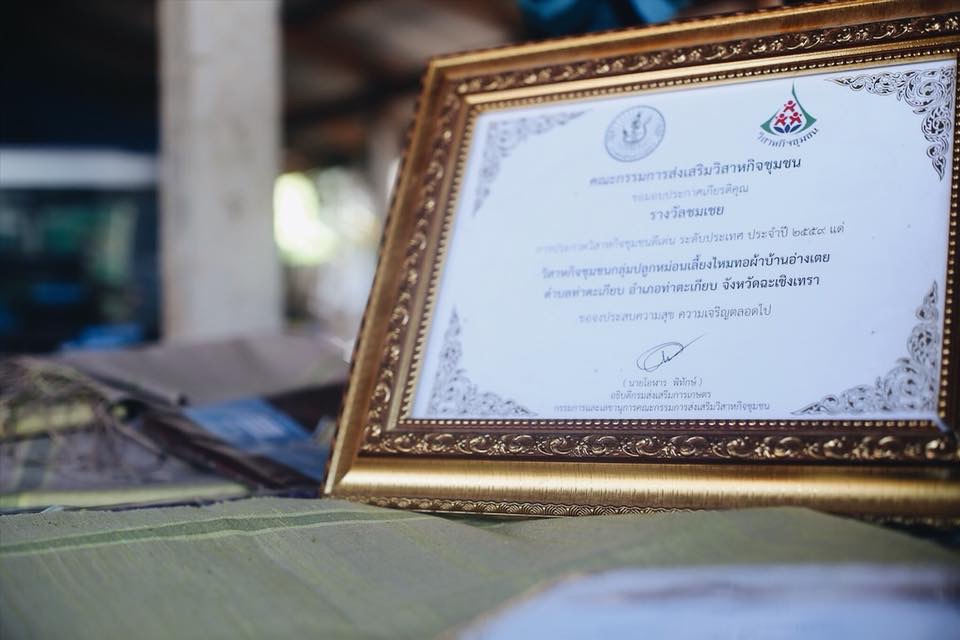 พอพายเรือมาถึงฝั่ง ซึ่งมีพี่สตาร์ฟคอยช่วยเหลือมาตลอดทาง รู้สึกเกรงใจพี่เค้ามาก เราก็ได้ขึ้นฝั่งพร้อมความเปียก ตัวลงน้ำไปยันเอว ก้าวไม่ดีเองไม่โทษใคร คิดซะว่าเล่นน้ำคลายร้อน แต่ลืมบอกไปเราสามารถเลือกระยะทางในการพายได้ มีตั้งแต่ 3,5,10,20 กิโลเมตร เลือกได้ตามใจชอบเลย ระยะเวลาการพายก็ขึ้นกับความชำนาญ แต่สำหรับมือใหม่อย่างเรา เบาๆไปก่อน 3 กิโล กับ 2 ชั่วโมง แค่นี้ก็หมุนจนหน้ามืดแล้ว 5555 พอขึ้นฝั่งก็เปลี่ยนชุดมาทานข้าวที่ชาวบ้านเตรียมไว้ ตรงนั้นมีร้านน้ำปั่นร้านนึง สั่งได้ตามใจ ใครใครสั่งสั่งเลย แต่เสียเงินนะไม่ฟรี กินอิ่มเสร็จเราก็ไปแวะดูชุมชนปลูกหม่อนเลี้ยงไหมทอผ้าบ้านอ่างเตย เราจะเดินทางมาไกลกันหน่อย แต่ที่นี่มีความมหัศจรรย์ เพราะที่นี่ทำผ้าไหม ต้องแต่เลี้ยงหนอนไหมเลยจนกระบวนการทอเป็นผืนแพ็คขาย แถมที่นี่ยังได้รางวัลการันตีมาอีกด้วย