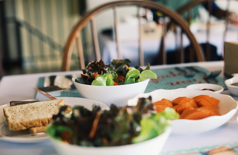 อรุณสวัสดิ์กับเช้าวันสุดท้ายของการเดินทาง ตื่นมาด้วยความสดใส อาบน้ำแต่งตัว ไปทานอาหารเช้าที่ห้องอาหาร โดยมีพนักงานคอยเตรียมรอไว้อยู่แล้ว ไปถึงโต๊ะก็จะมีสลัดกับผลไม้รออยู่ แล้วพนักงานก็จะเอาจานหลักมาเสริฟ เป็นแฮม ไส้กรอก แล้วก็ชีสต์ทาสต์ อิ่มเว่อ อร่อย ฟินกับชีสต์ พอกินเสร็จแล้วก็ไปถ่ายระเบียงที่แต่งแบบสวน ไว้นั่งชมวิว เก็บกระเป๋ามาเช็คเอ้าท์ ถ่ายรูปคาเฟ่ข้างล่างนิดหน่อย คาเฟ่แบบสวยมากๆ มีความวินเทจ เป็นที่พักอีกที่ที่ไม่ควรพลาด ปักหมุดไว้เลย